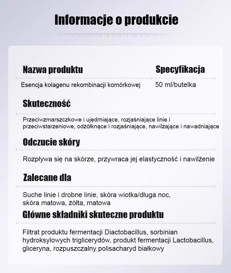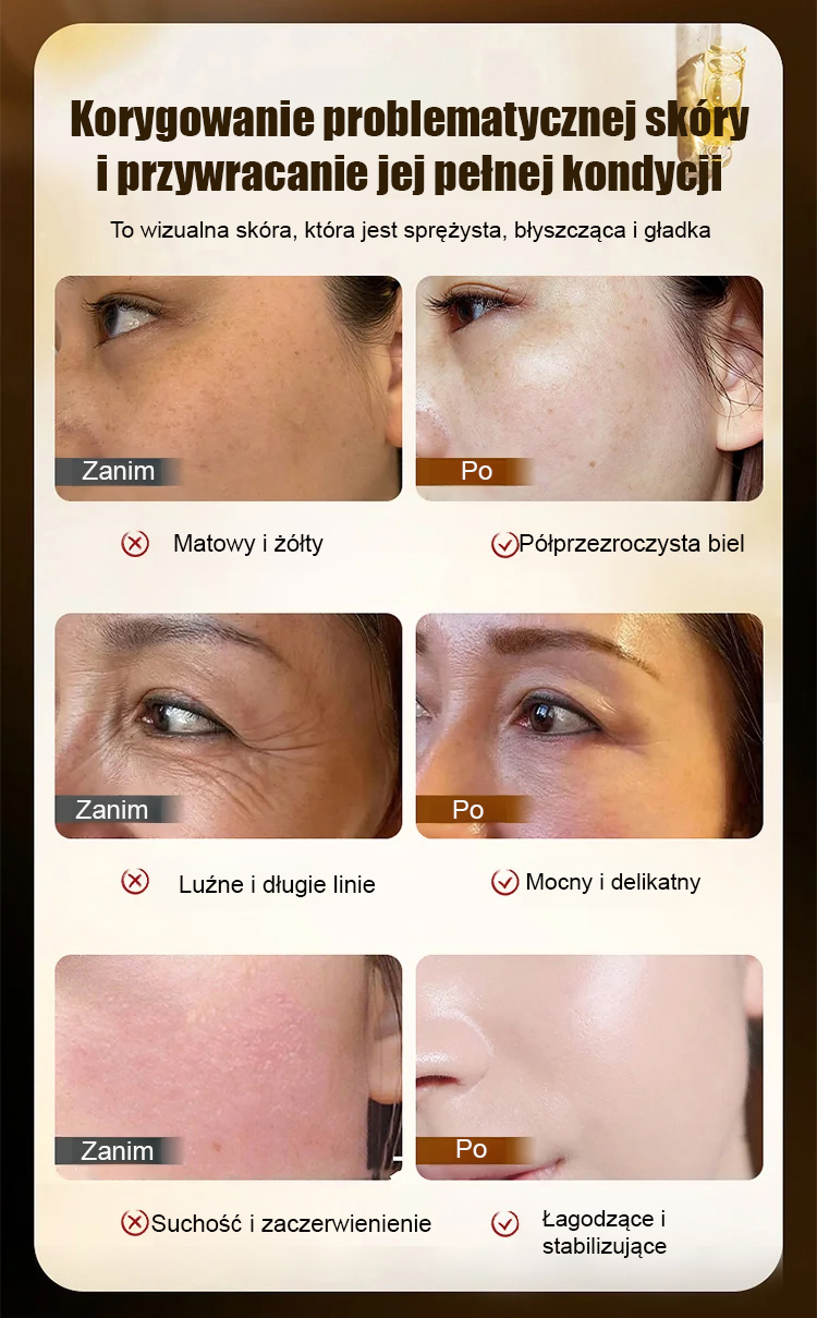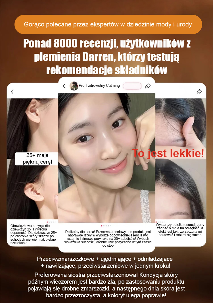 Opóźnij procesy starzenia, ujędrnij skórę i wypełnij drobne zmarszczki, jednocześnie wyrównując koloryt cery.💯Widoczna poprawa już po 7 dniach, a uczucie głębokiego nawilżenia i napięcia skóry zauważysz już po pierwszym użyciu! Łagodna formuła, idealna nawet dla cery wrażliwej.