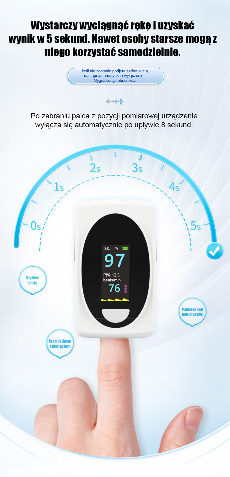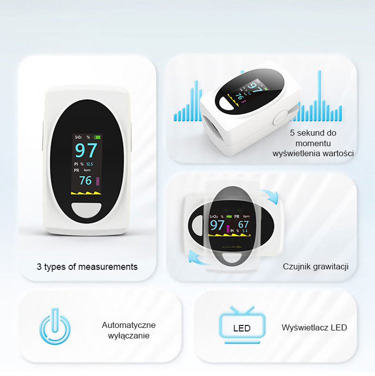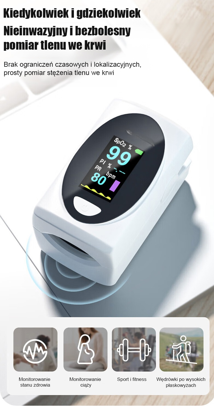 Międzynarodowa Certyfikacja 🏅Zaawansowany pulsoksymetr z dokładnością 99%.